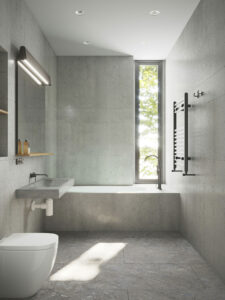 Aquests materials permeten crear banys moderns, resistents a la humitat i fàcils de netejar.